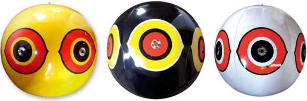 Набор Scare Eye составляют три виниловых сферы с нанесенными на поверхность рисунками глаз хищных птиц. Голографический эффект, светоотражающие элементы и движение, вызванное порывами ветра, вызывают у пернатых страх и заставляют за сотни метров облетать приспособления.